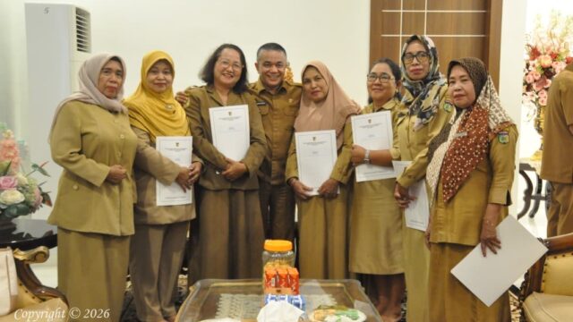 SULTENG RAYA- Wali Kota Palu Hadianto Rasyid, menyerahkan Surat Keputusan (SK) kepada 12...