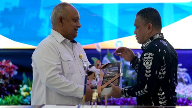 SULTENG RAYA- Wali Kota Palu, Hadianto Rasyid, secara simbolis menyerahkan Laporan Keuangan...