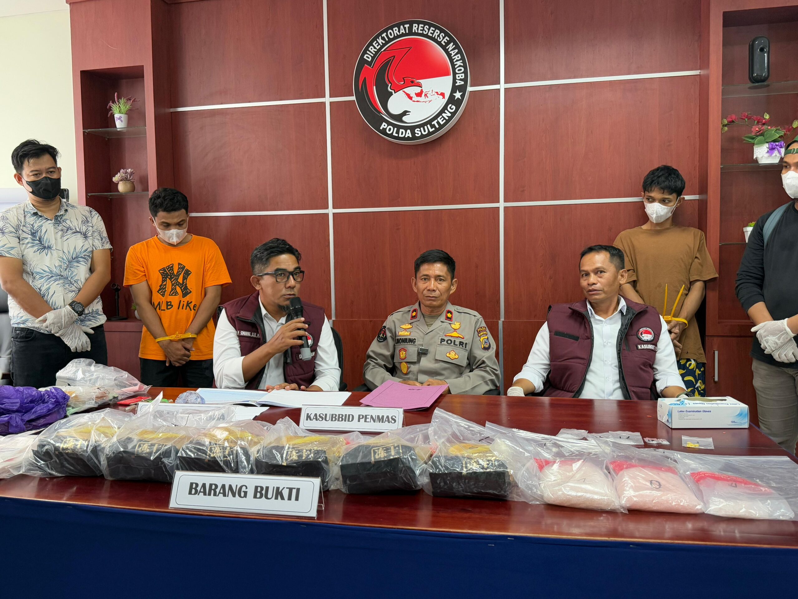 Direktur Reserse Narkoba Polda Sulteng, Kombes Pribadi Sembiring, saat memimpin konferensi pers, Senin (22/9/2025) menjelaskan, dua pelaku yang berhasil diamankan berinisial VR (29), warga BTN Lasoani, dan MH (26), warga Desa Sibowi, Kabupaten Sigi. Keduanya diduga berperan sebagai kurir narkoba.