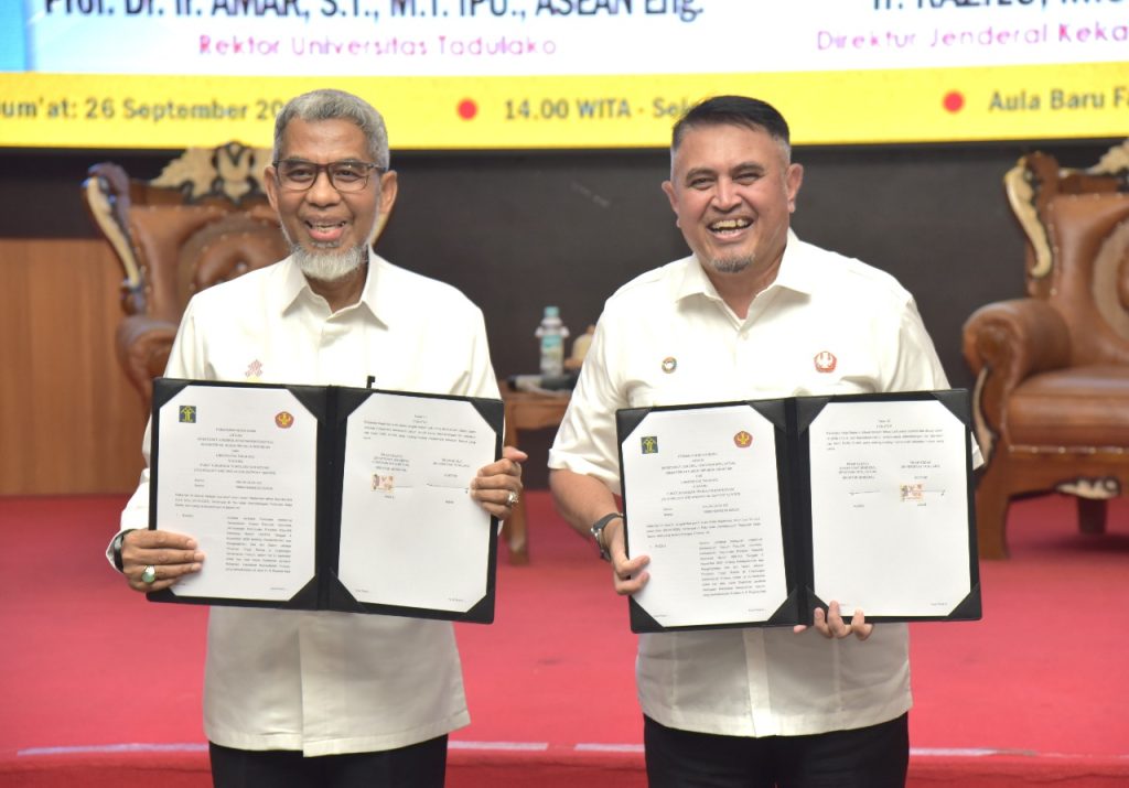 SULTENG RAYA-Universitas Tadulako (Untad) bersama Direktorat Jenderal Kekayaan Intelektual (DJKI) Kementerian Hukum RI pada Jumat siang (26/09/2025) menyelenggarakan acara penandatanganan Perjanjian Kerja Sama (PKS) yang dirangkaikan dengan penyerahan sertifikat hak cipta serta kuliah umum bertema “Peran Serta Perguruan Tinggi dalam Mendukung Ekosistem Kekayaan Intelektual”.