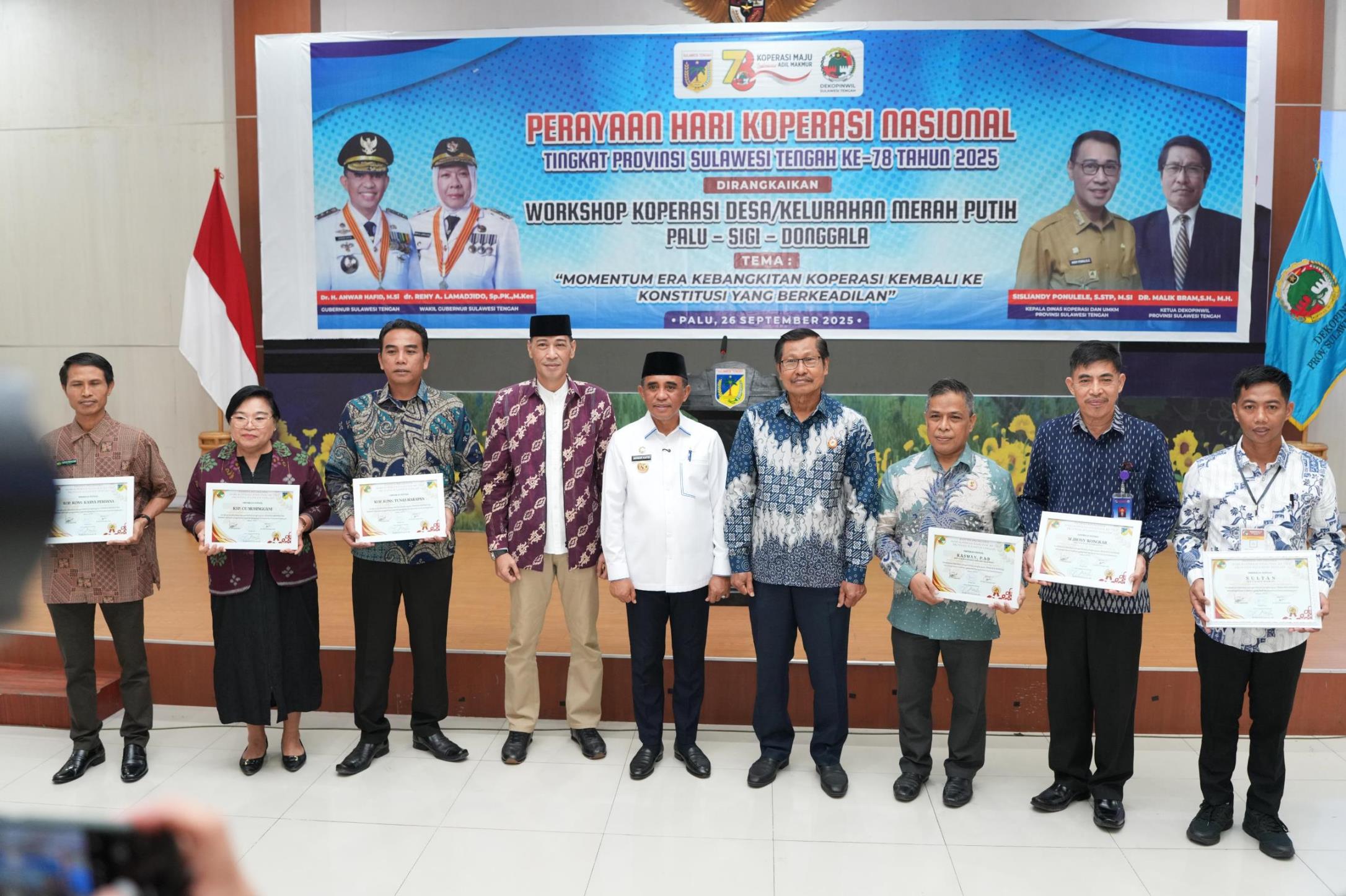 SULTENG RAYA – Gubernur Sulawesi Tengah (Sulteng), Anwar Hafid, menghadiri perayaan Hari Koperasi Nasional (Harkopnas) ke-78 Tingkat Provinsi Sulteng sekaligus membuka Workshop Koperasi Desa/Kelurahan Merah Putih Palu-Sigi-Donggala, Jumat (26/9/2025) di Gedung Pogombo, kantor Gubernur Sulteng.