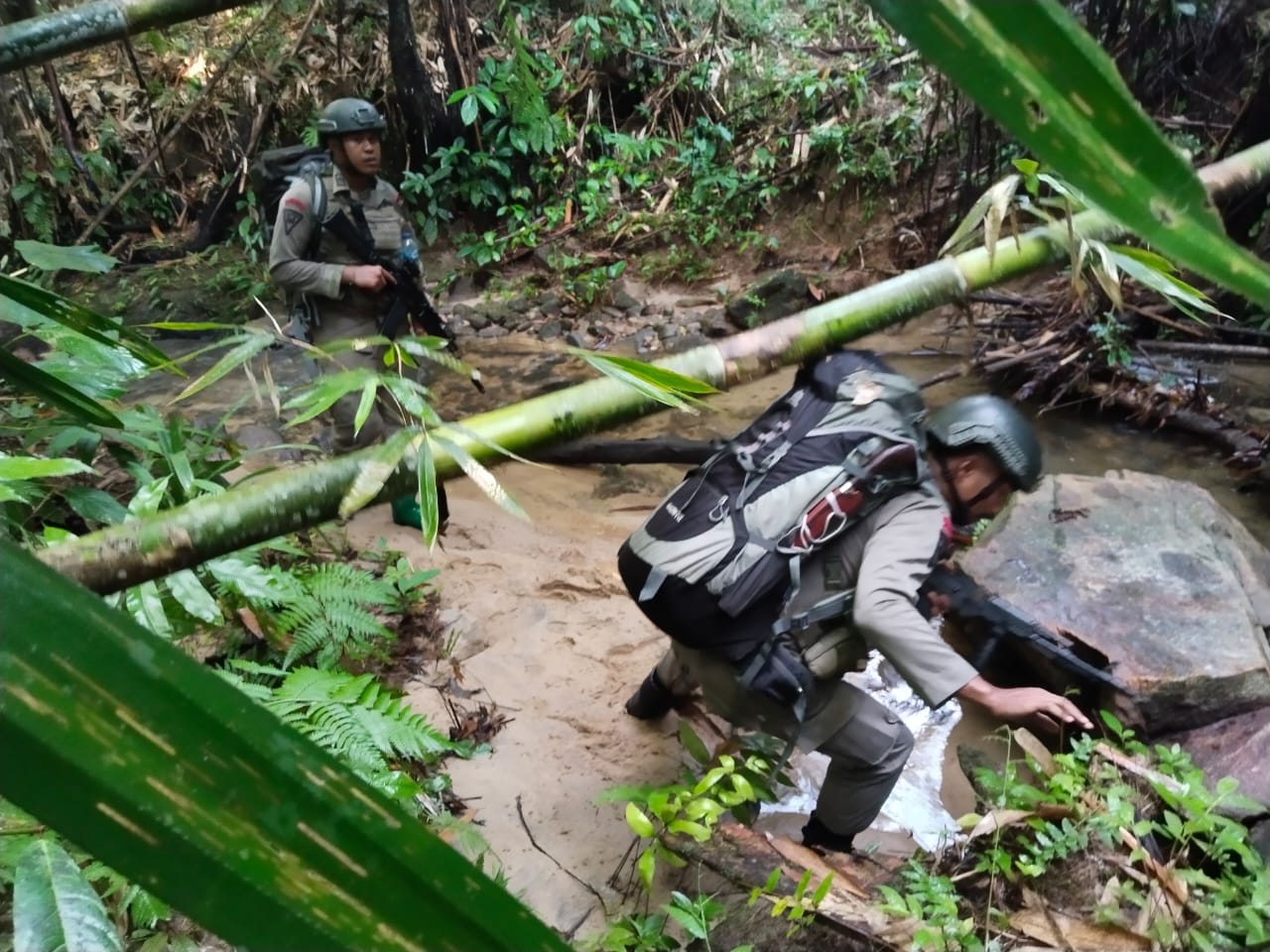 Selain mengamankan wilayah, patroli jalur klasik melalui hutan pegunungan juga menjadi ajang komunikasi antara aparat dengan warga saat melakukan aktivitas berkebun.