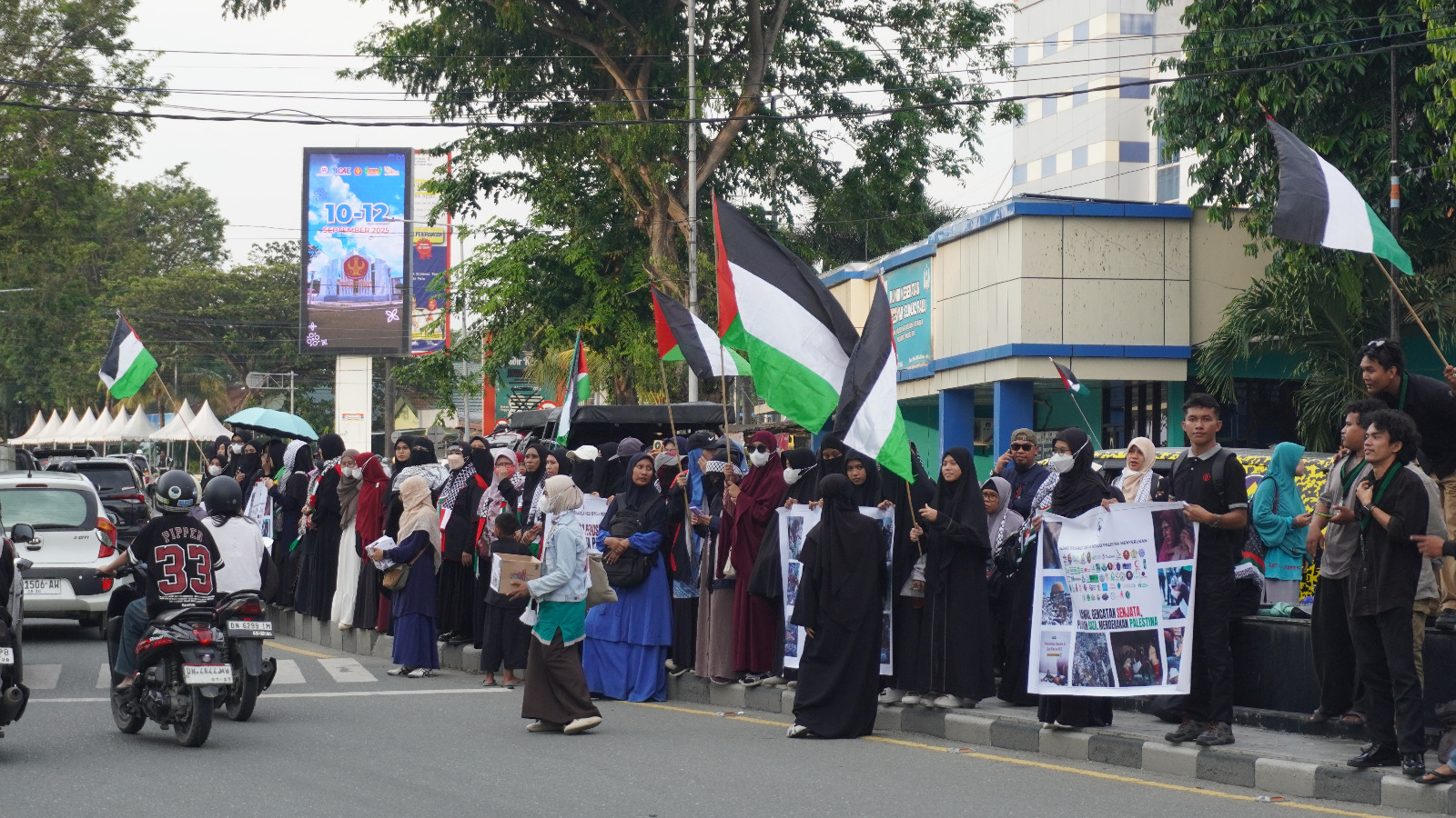 SULTENG RAYA – Ratusan massa dari berbagai aliansi, turun ke jalan melakukan aksi damai, menyuarakan pembelaan mereka terhadap Palestina. Aksi yang diorganisir Komite Nasional untuk Rakyat Palestina (KNRP) Sulawesi Tengah, menggelar aksinya di tugu pusat Kota Palu, Jumat (10/10/2025).