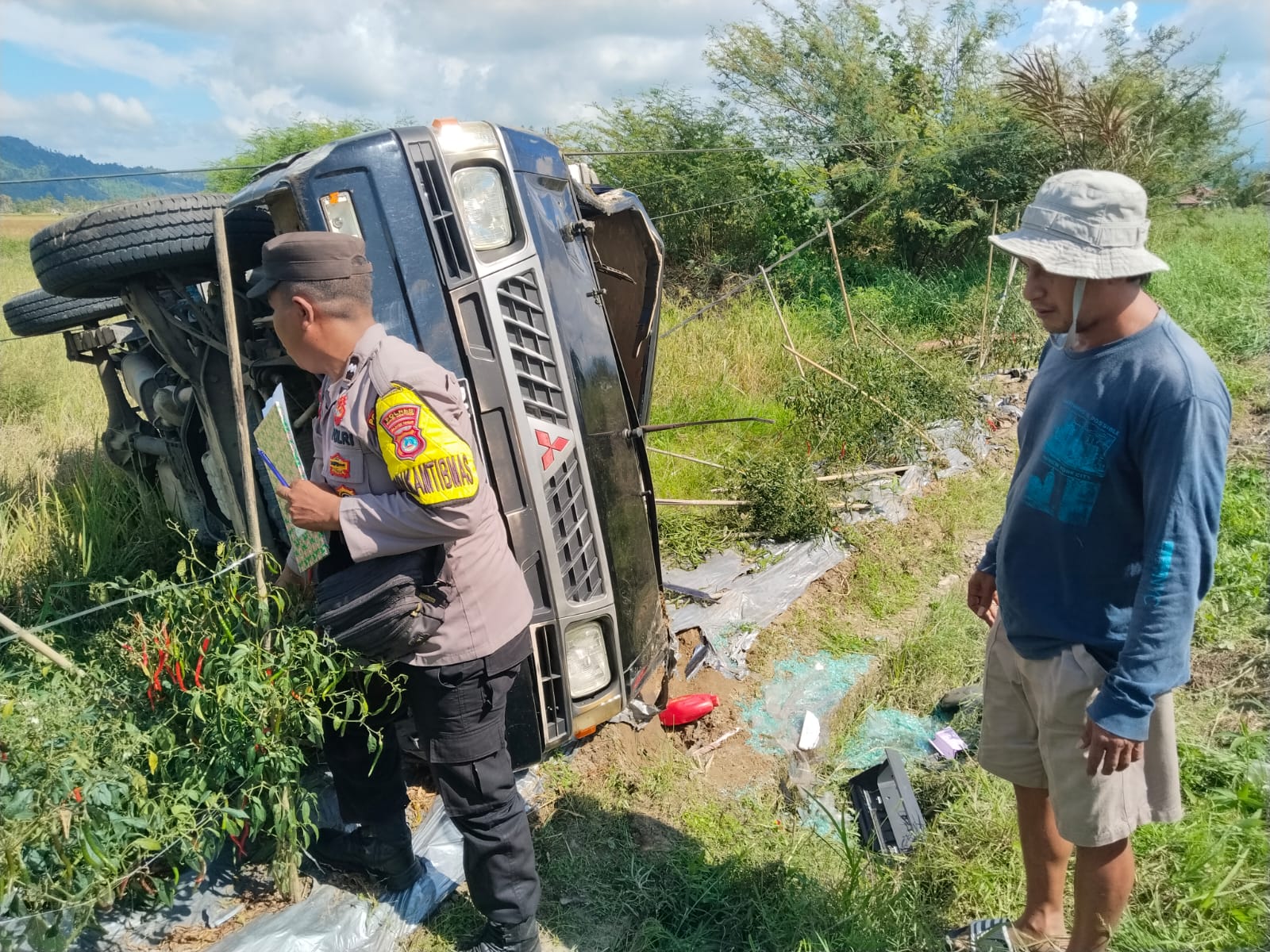 SULTENG RAYA  — Kecelakaan lalu lintas  (Lakalantas) terjadi di Desa Suli Indah, Kecamatan Balinggi, Kabupaten Parigi Moutong, Senin, (13/10/2025) sekitar pukul 13.50 WITA. Insiden tersebut melibatkan dua unit mobil pick up yang menyebabkan dua orang mengalami luka-luka. Dua mobil pick up tersebut saling bertabrakan, dan satu di antaranya terguling ke area persawahan.