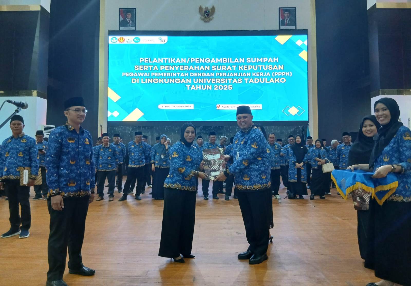SULTENG RAYA– Rektor Universitas Tadulako (Untad), Prof. Dr. Ir. Amar, ST., MT, telah melantik dan mengambil sumpah sebanyak 747 Pegawai Pemerintah dengan Perjanjian Kerja (PPPK) tahun 2025 di lingkungan kampus tersebut, sekaligus dirangkaikan dengan penyerahan Surat Keputusan (SK).