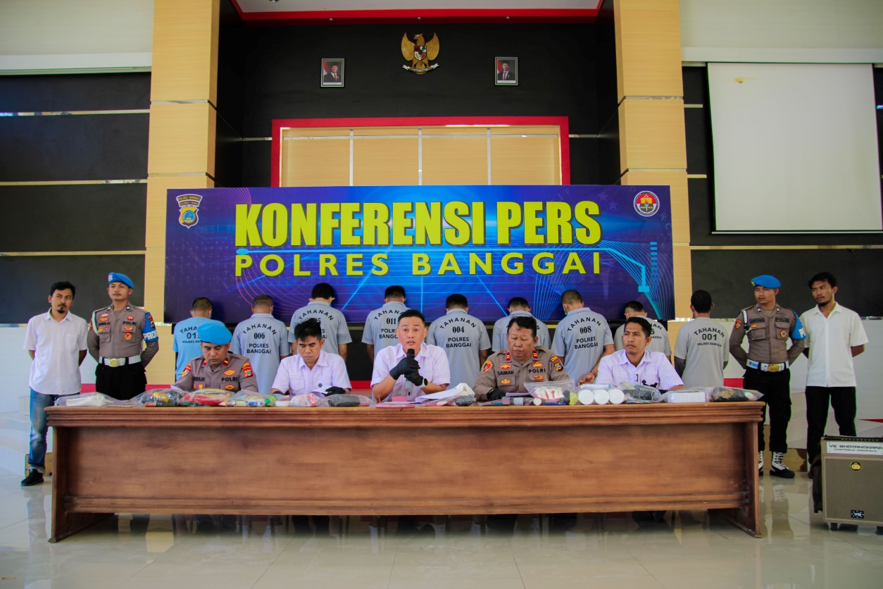 SULTENG RAYA – Polres Banggai menggelar press conference kasus narkoba periode Agustus-Oktober 2025, dengan menghadirkan sebanyak 26 tersangka termasuk dua diantaranya perempuan, di aula Maleo Mapolres Banggai, Rabu (15/10/2025).