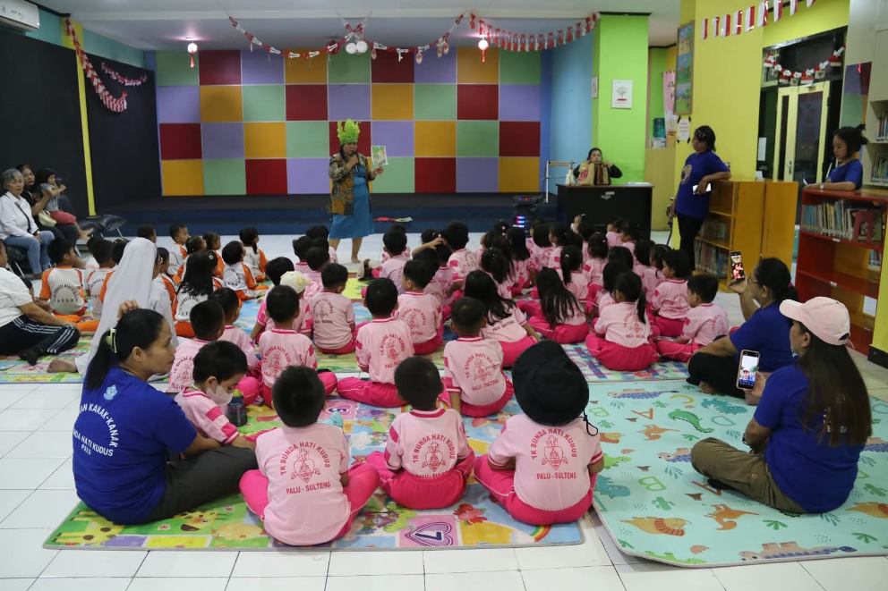 Sebanyak 73 pemustaka cilik dari TK Permata Bagi Bangsa Palu dan TK Bunda Hati Kudus Palu melakukan kunjungan edukatif ke Dispusaka Sulteng, khususnya di Bidang Layanan Perpustakaan.