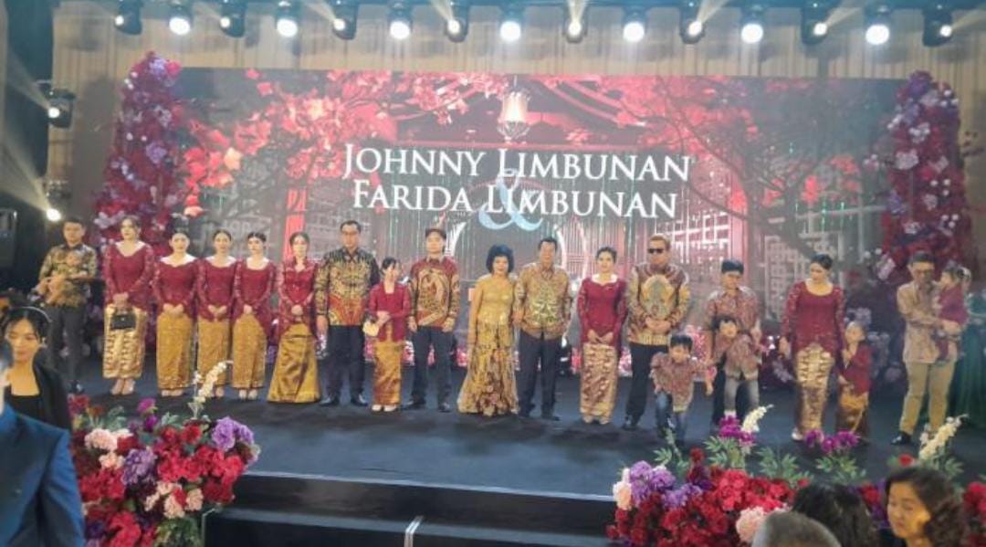 SULTENG RAYA- Pengusaha berusia 77 tahun bernama Johny Limbunan merayakan ulang tahun pernikahan 50 tahun (golden wedding) bersama leluarga, karyawan, mitra hingga relasi bisnisnya di Hotel Santika Palu, pada Minggu malam (26/10/2025).