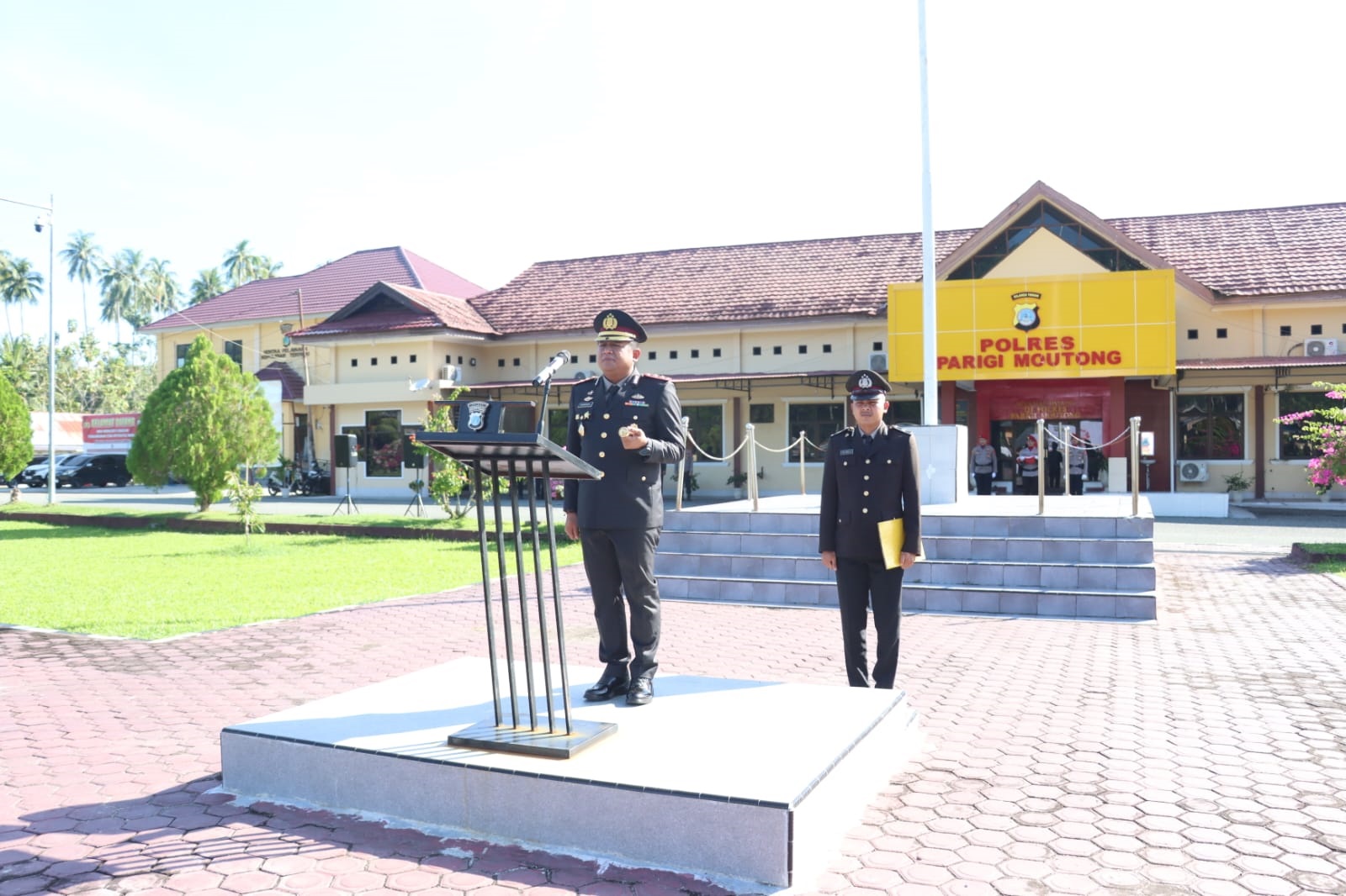 Kapolres Parigi Moutong, AKBP Dr Hendrawan A.N, SIK, MH menjadi selaku inspektur upacara.