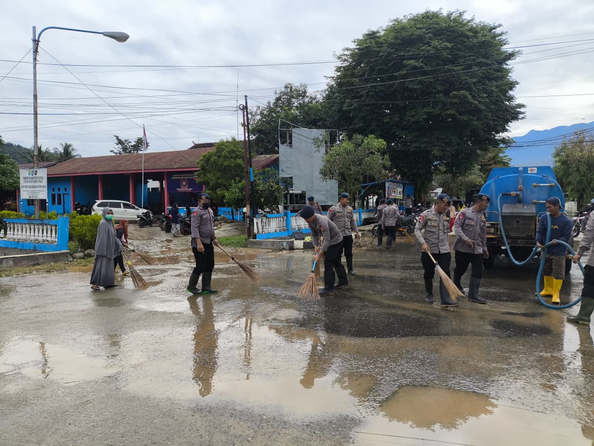 SULTENG RAYA – Personel Kompi 4 Batalyon A Pelopor Satbrimobda Sulawesi Tengah (Sulteng) melaksanakan pembersihan pascabanjir di wilayah terdampak banjir di Kabupaten Tolitoli.