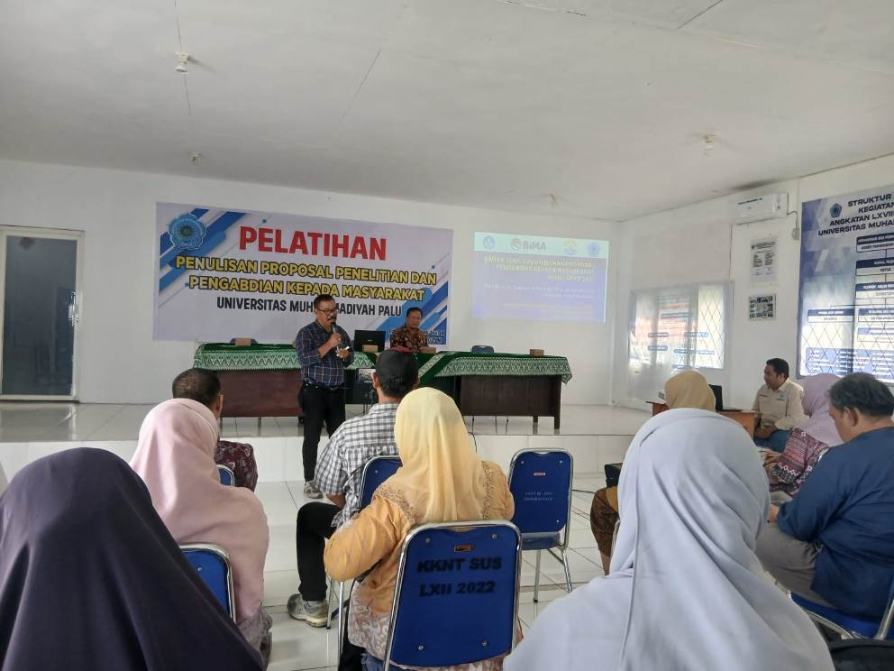 SULTENG RAYA- Lembaga Penelitian dan Pengabdian Masyarakat (LPPM) Universitas Muhammadiyah (Unismuh) Palu kembali melakukan upaya peningkatan kapasitas dosen di bidang pengabdian masyarakat melalui pelatihan penulisan proposal pengabdian, dengan menghadirkan akademisi berpengalaman dari Universitas Negeri Makassar (UNM) Prof. Dr. Ir. H. Bakhrani A. Rauf, M.T sebagai narasumber utama.