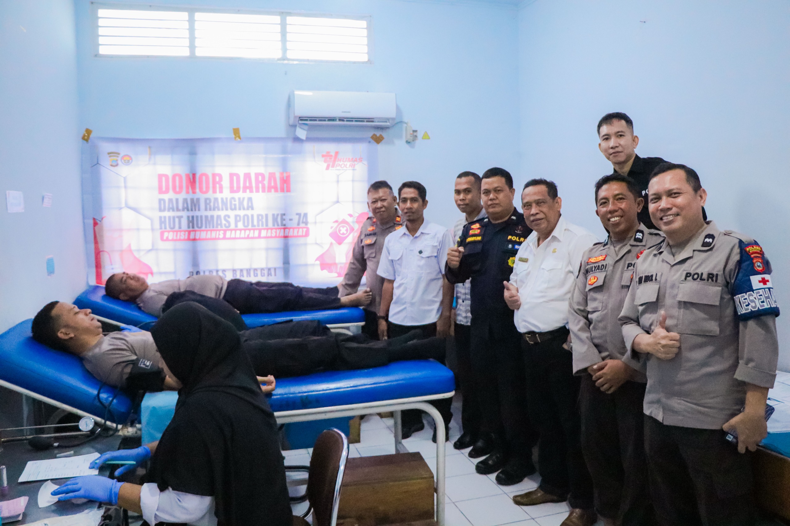 SULTENG RAYA – Dalam rangka menyambut Hari Ulang Tahun (HUT) ke-74 Humas Polri, aparat Polres Banggai bersama awak media, menggelar Bakti Sosial (Baksos) donor darah, di UTD Palang Merah Indonesia (PMI), Kabupaten Banggai, Rabu (29/10/2025).