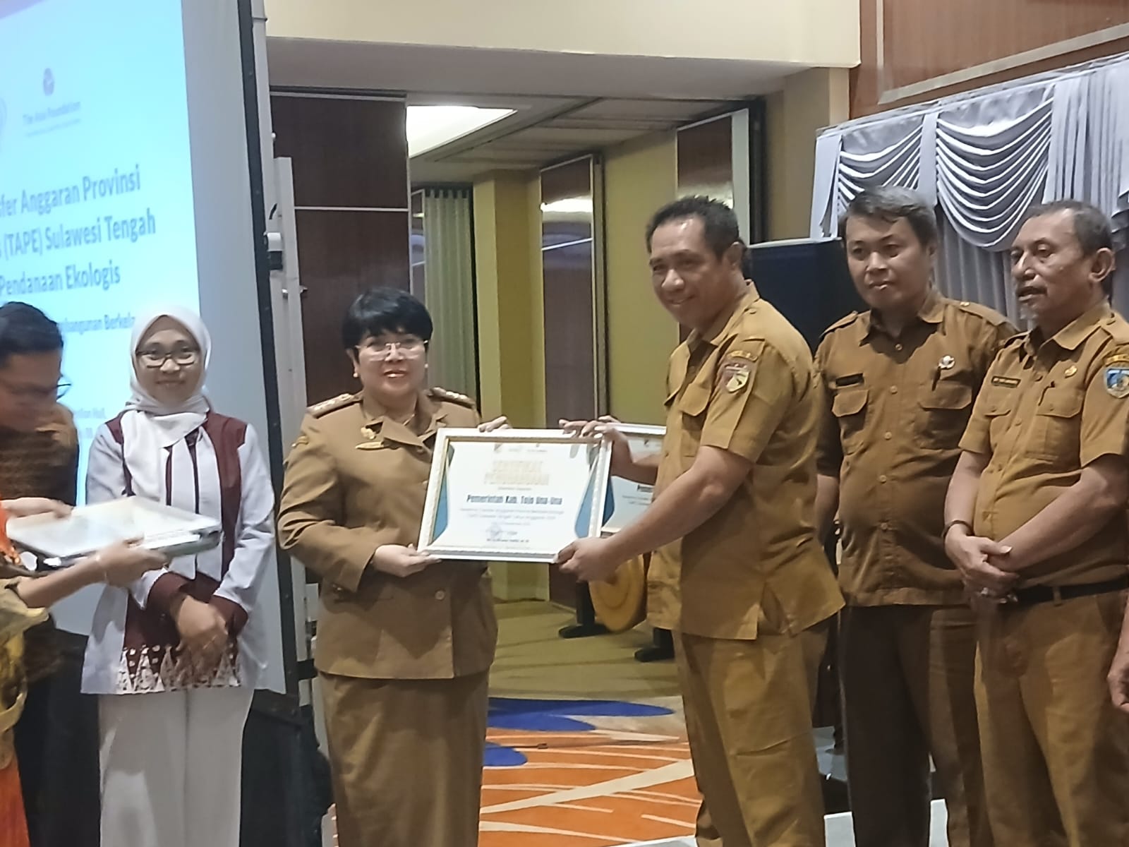 Penyerahan insentif keuangan tersebut secara simbolis melalui peluncuran Transfer Anggaran Provinsi berbasis Ekologis (TAPE) Sulawesi Tengah dan Seminar Pendanaan Ekologis dengan mengambil tema “”Inovasi, Kolaborasi dan Kebijakan untuk Pembangunan Berkelanjutan” dilaksanakan di Sriti Convention Hall, Senin (3/11/2025) diinisiasi oleh Yayasan Sikola Mombine.