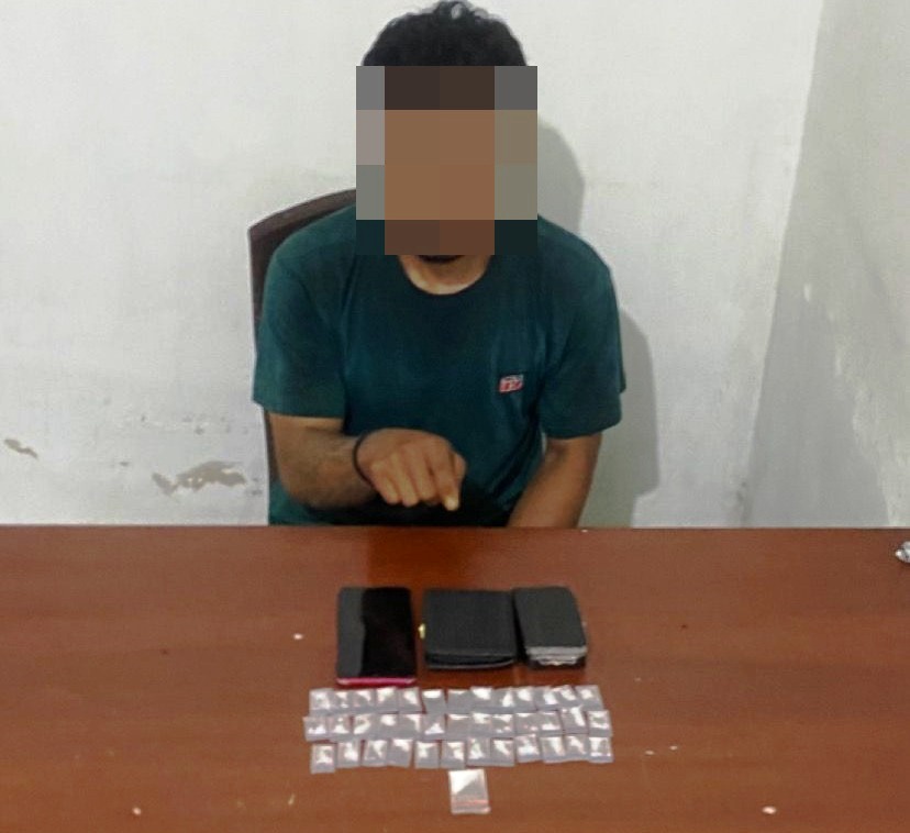 Saat dilakukan penggeledahan di kamar pelaku, tim menemukan satu plastik sedang yang diduga berisi sabu-sabu, 37 paket plastik kecil diduga berisi sabu-sabu, dan satu unit handphone.