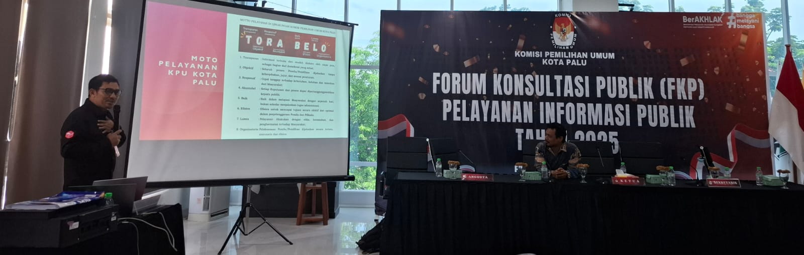 Tagline ini diperkenalkan dalam acara Forum Konsultasi Publik (FKP) Pelayanan Informasi Publik Tahun 2025 yang berlangsung di lantai 3 kantor KPU Palu, Selasa (11/11/2025).