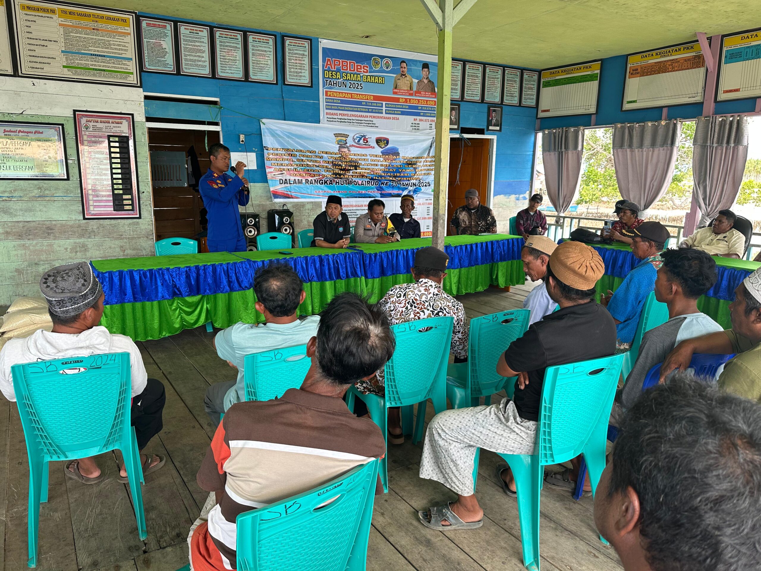 Kegiatan tersebut dipimpin langsung Kasat Polairud Polres Parmout, Iptu Gigih Winanda, S.H., bersama dua personel. Hadir pula Kepala Desa Sama Bahari, Sekretaris Desa, serta anggota Kelompok Pengawas Masyarakat (Pokwasmas) Desa Sama Bahari.