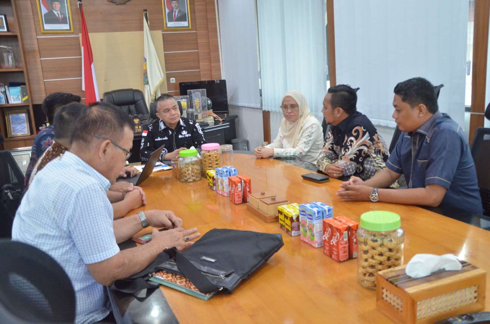 SULTENG RAYA- Wali Kota Palu, Hadianto Rasyid, menerima kunjungan pihak Indogrosir pada Kamis (13/11/2025) di ruang kerjanya.