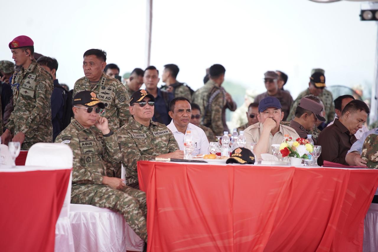 SULTENG RAYA – TNI menampilkan salah satu operasi udara paling strategis dalam Latihan Komando Gabungan (Kogab) TNI 2025 di kawasan Bandara PT IMIP, Morowali, Rabu (19/11/2025). Menteri Pertahanan RI Sjafrie Sjamsoeddin hadir langsung menyaksikan jalannya operasi force down tersebut, didampingi Gubernur Sulawesi Tengah Anwar Hafid. Kehadiran keduanya menjadi sorotan karena menunjukkan kuatnya sinergi pusat–daerah dalam memperkuat keamanan kawasan industri strategis di Morowali.