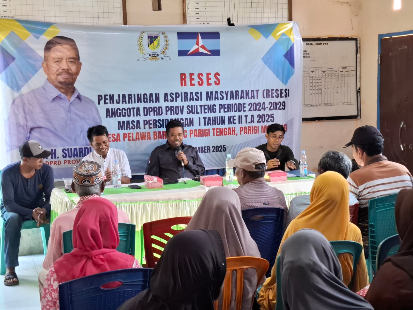 SULTENG RAYA — Anggota DPRD Provinsi Sulawesi Tengah dari Daerah Pemilihan Parigi Moutong, Drs. H. Suardi, kembali turun langsung menyapa masyarakat melalui agenda reses yang digelar pada 12–18 November 2025. Kegiatan ini berlangsung di empat titik, yakni Desa Auma Kecamatan Sausu, Desa Tolai Barat Kecamatan Torue, Desa Lemusa Kecamatan Parigi Selatan, serta Desa Pelawa Baru Kecamatan Parigi Tengah.