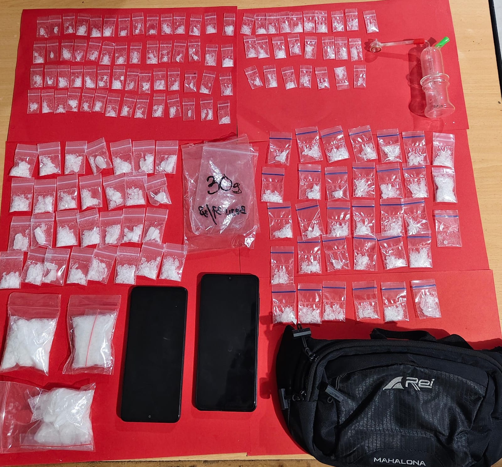 Setelah memastikan keberadaan pelaku, polisi kemudian melakukan penangkapan dan penggeledahan. Di lokasi, tim menemukan barang bukti berupa 135 paket sabu, sebuah alat hisap, tas hitam, plastik klip kosong, serta dua unit ponsel yang diduga digunakan untuk aktivitas transaksi.