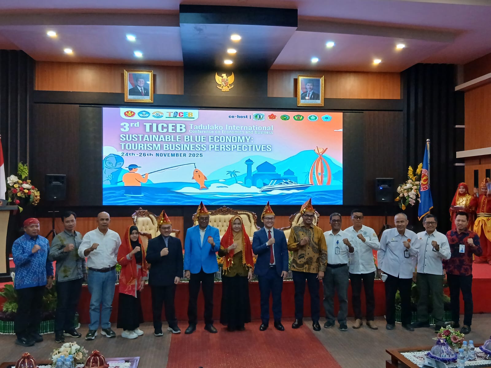 SULTENG RAYA- Konferensi Internasional Ekonomi dan Bisnis Tadulako (TICEB) kembali digelar. Memasuki tahun ketiga pelaksanaannya pada 2025, konferensi yang diinisiasi Fakultas Ekonomi dan Bisnis Universitas Tadulako ini mengangkat tema “Ekonomi Biru Berkelanjutan: Perspektif Bisnis Pariwisata”. Kegiatan berlangsung selama tiga hari, 24–26 November 2025.