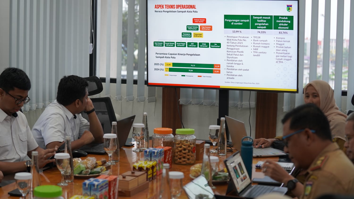 SULTENG RAYA- Wali Kota Palu, Hadianto Rasyid, menerima kunjungan tim penilai dan verifikasi lapangan pemilihan kabupaten/kota terbaik dalam sistem pengelolaan sampah pada peringatan Hari Bakti ke-80 PU, Senin (24/11/2025), di ruang kerja Wali Kota Palu.
