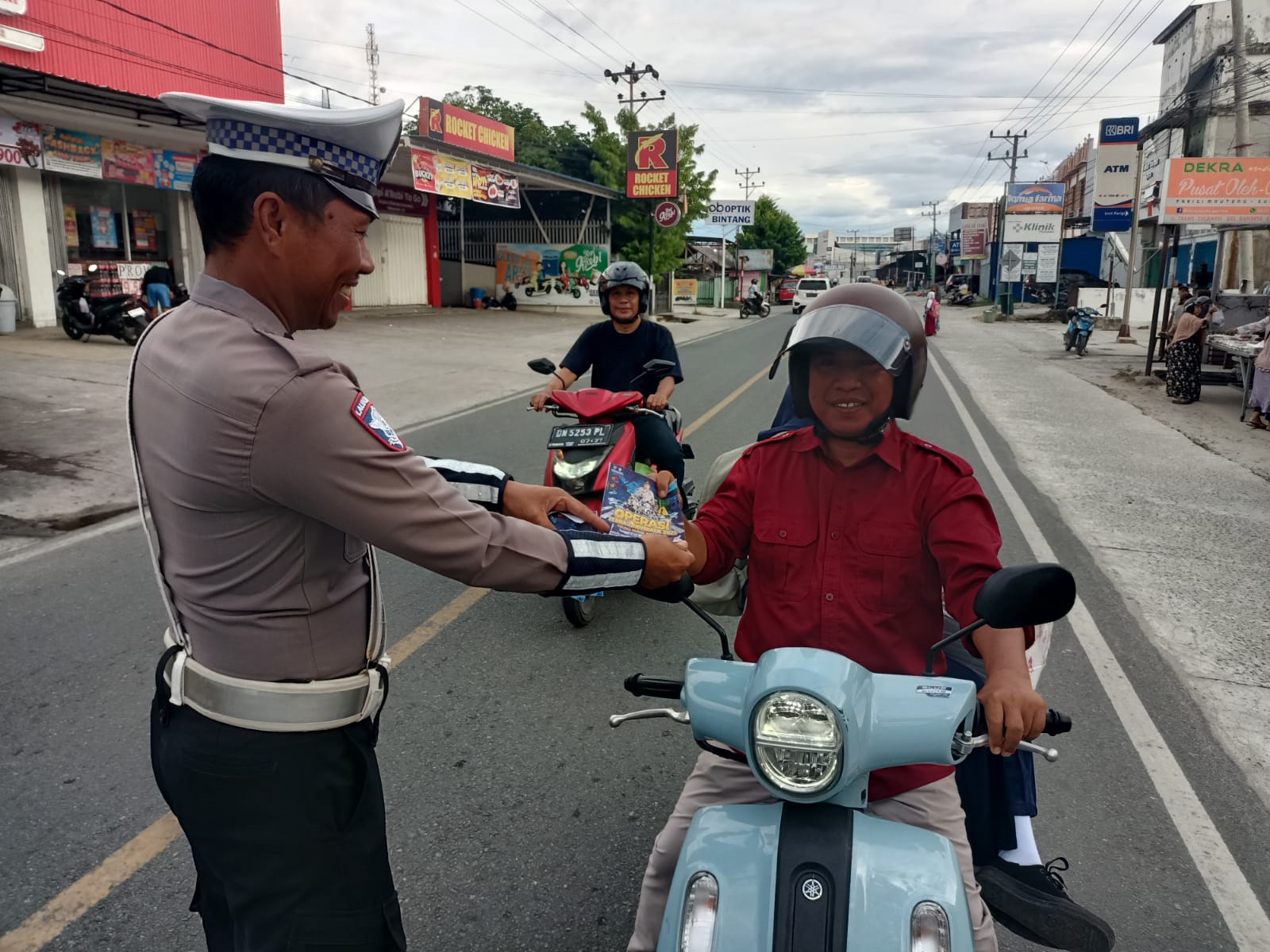 Dengan pendekatan humanis, petugas menyampaikan imbauan tertib berlalulintas kepada pengendara yang melintas. Mulai dari pentingnya memakai helm berstandar SNI, menghindari penggunaan ponsel saat berkendara, hingga mengingatkan agar selalu mematuhi marka dan rambu lalu lintas