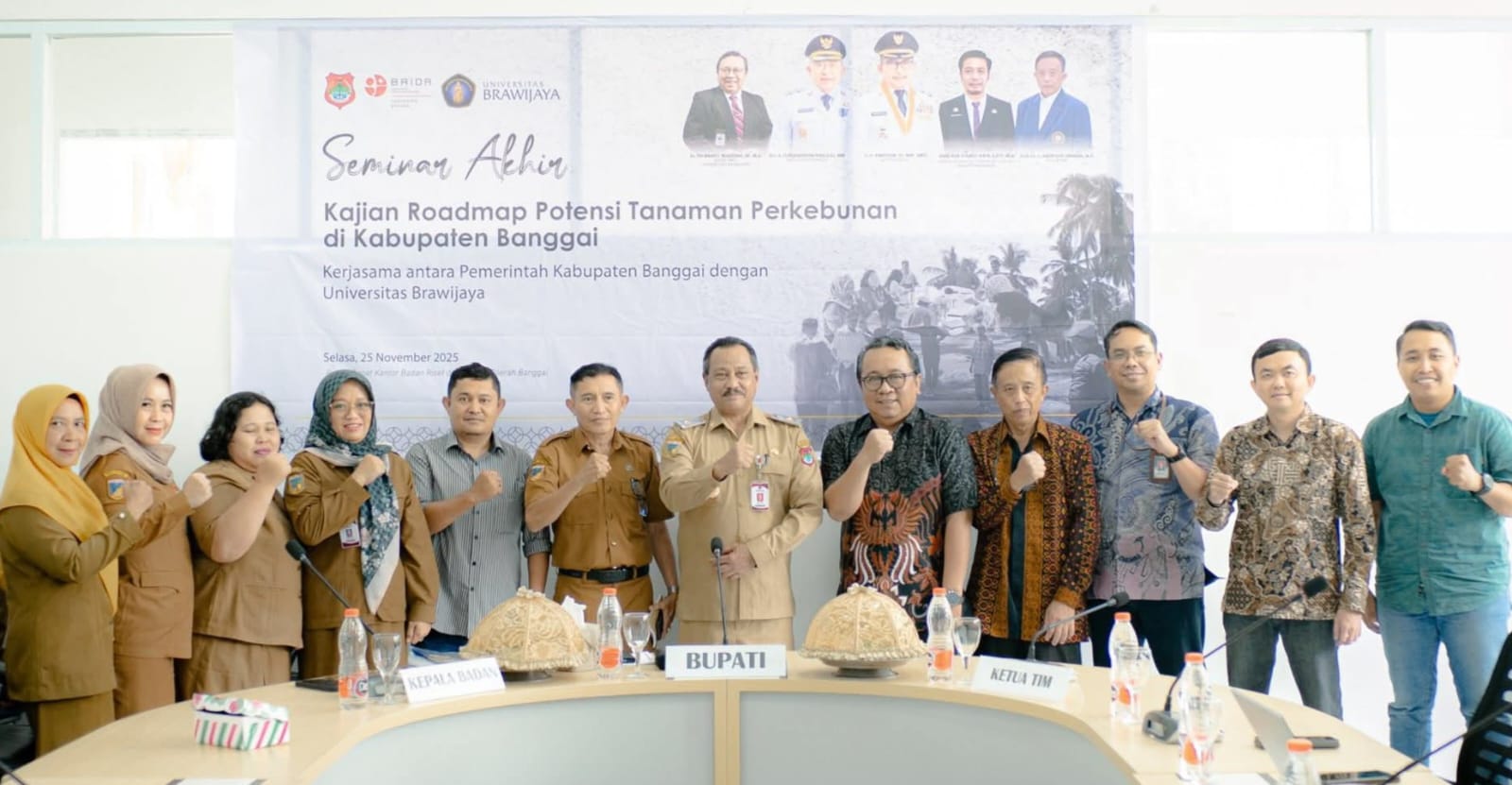 SULTENG RAYA – Pemerintah Kabupaten (Pemkab) Banggai melalui Badan Riset dan Inovasi Daerah (BRIDA), bekerjasama dengan Universitas Brawijaya Malang (UBM), menggelar seminar akhir kajian road map potensi perkebunan, di ruang rapat kantor BRIDA, Selasa (25/11/2025).