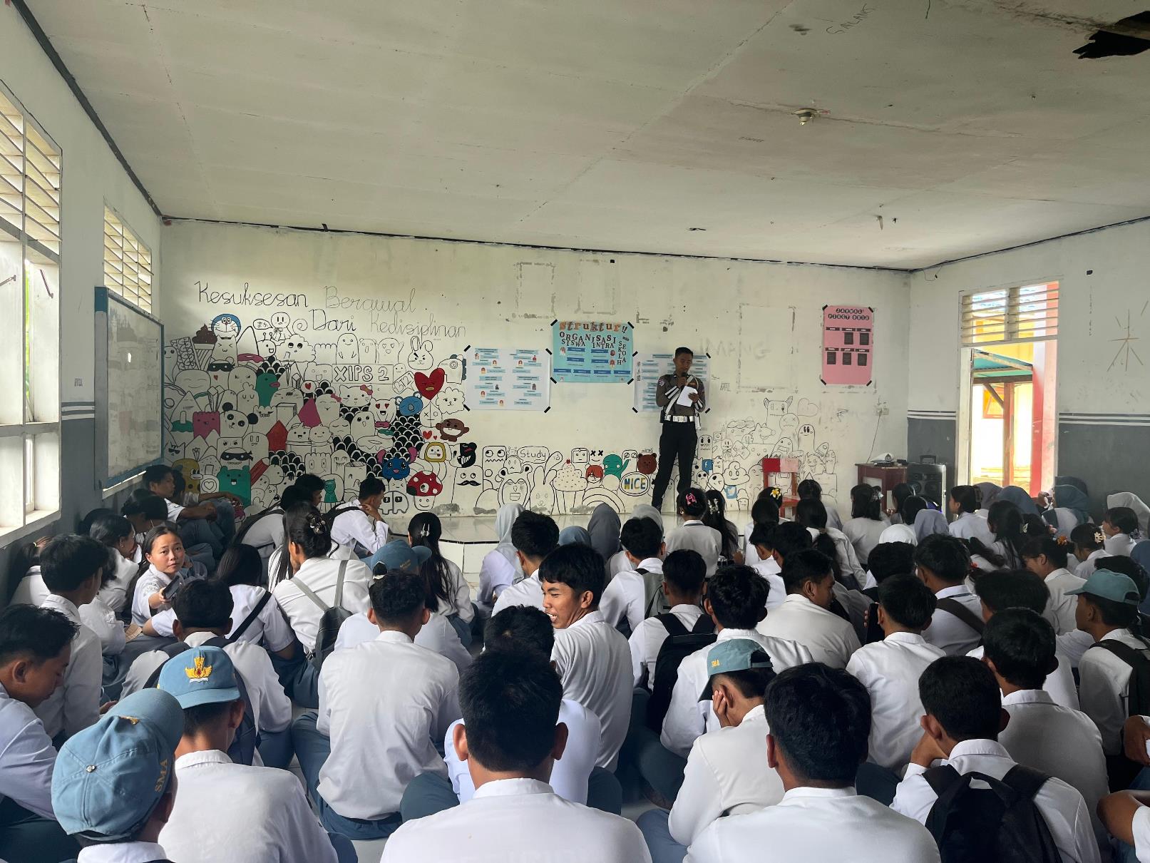 SULTENG RAYA – Aparat Satuan Lalu Lintas (Satlantas) Polres Banggai menggelar program Polantas Menyapa, di SMA Negeri 1 Masama, Kabupaten Banggai, Senin (1/12/2025).