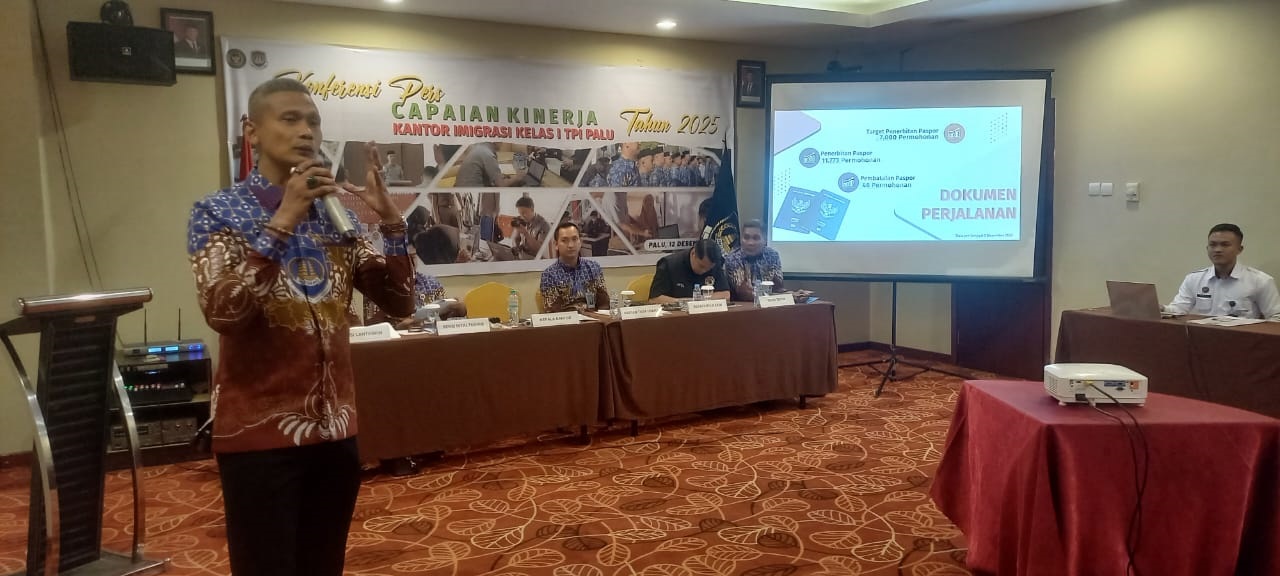 Hal itu disampaikan Kepala Kantor Imigrasi (Kakanim) Kelas I TPI Palu, Pungki Handoyo, S.H,M.H saat Konferensi Pers Capaian Kinerja Kantor Imigrasi Kelas I TPI Palu Tahun 2025 pada Jumat (12/12/2025) pagi di salah satu hotel di Kota Palu.