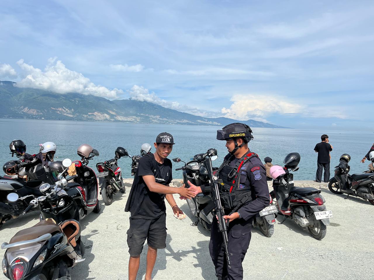 SULTENG RAYA – Tim Patra Satuan Brimob Polda Sulawesi Tengah melaksanakan kegiatan patroli di tempat wisata Kampung Nelayan serta sejumlah gereja di Kota Palu, Minggu (14/12/2025). Kegiatan ini dilakukan sebagai langkah preventif untuk menjaga situasi keamanan dan ketertiban masyarakat agar tetap aman dan kondusif, khususnya pada akhir pekan dan saat pelaksanaan ibadah.
