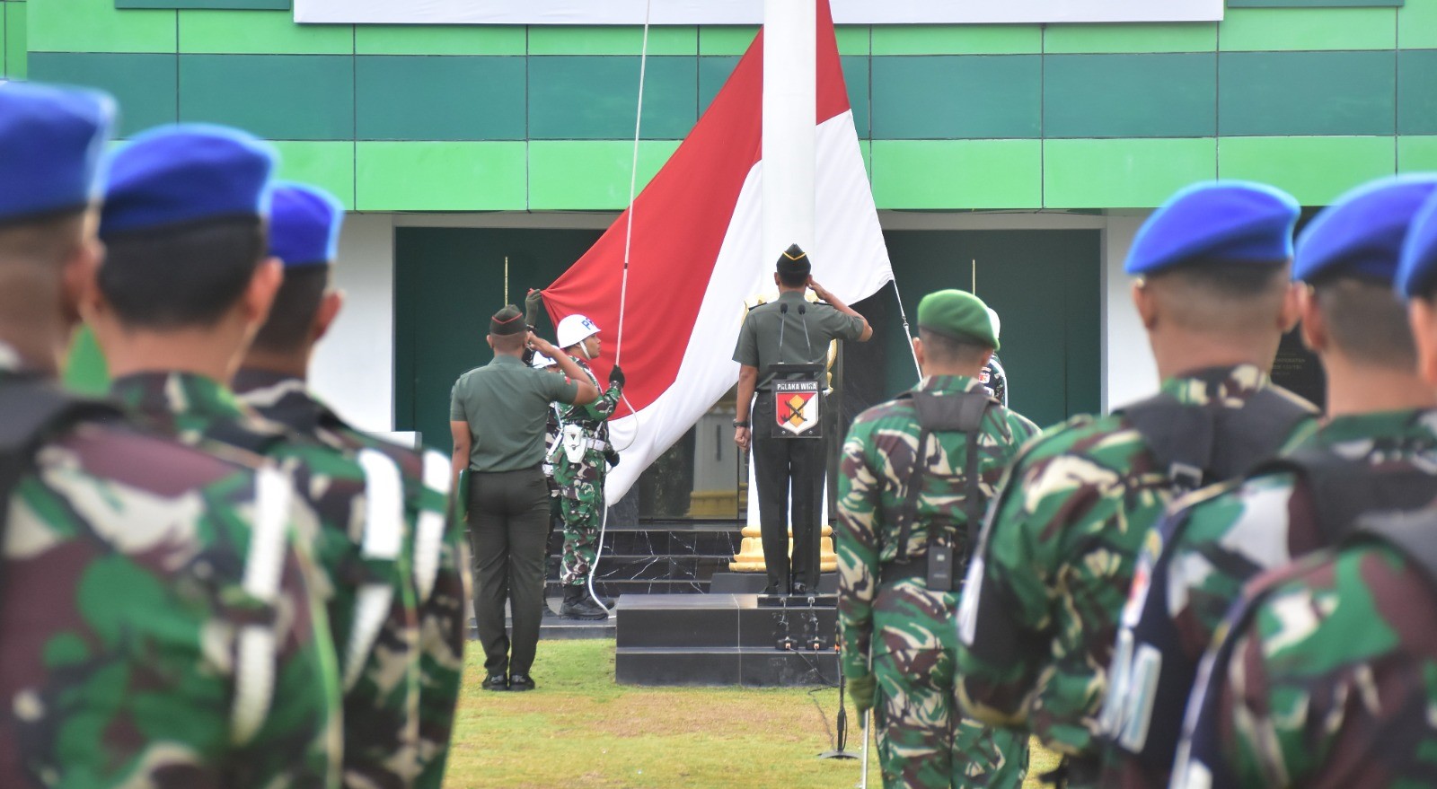 Upacara bendera berlangsung khidmat dengan Inspektur Upacara (Irup) Kakomlekdam Kodam XXIII/Palaka Wira, Kolonel Cek I Gusti Ngurah Sumahardika. Kegiatan tersebut, diikuti oleh seluruh prajurit serta Pegawai Negeri Sipil (PNS) di lingkungan Kodam XXIII/Palaka Wira.