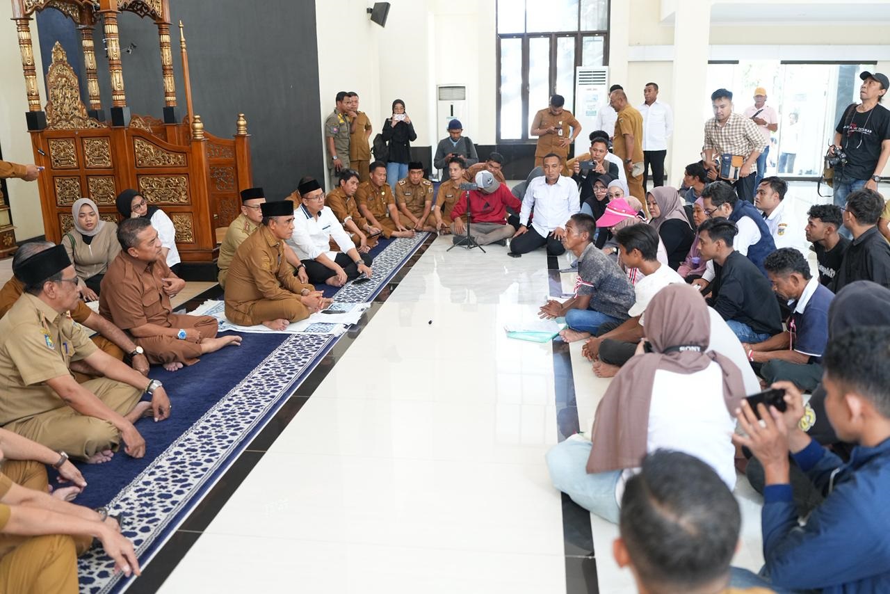 SULTENG RAYA – Gubernur Anwar Hafid, menemui langsung aksi demonstrasi Aliansi Masyarakat Desa Loli Oge usai salat Dzuhur di Masjid Kantor Gubernur Sulawesi Tengah, Senin (29/12/2025).