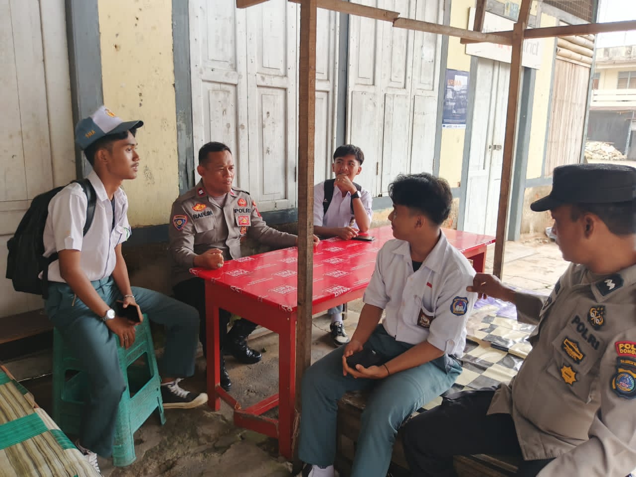 Ps.Bhabinkamtibmas Aiptu M. Raflin, S.E., bersama personel Sat Binmas Polres Donggala mengedepankan dialog dua arah untuk membangun komunikasi positif dengan generasi muda.