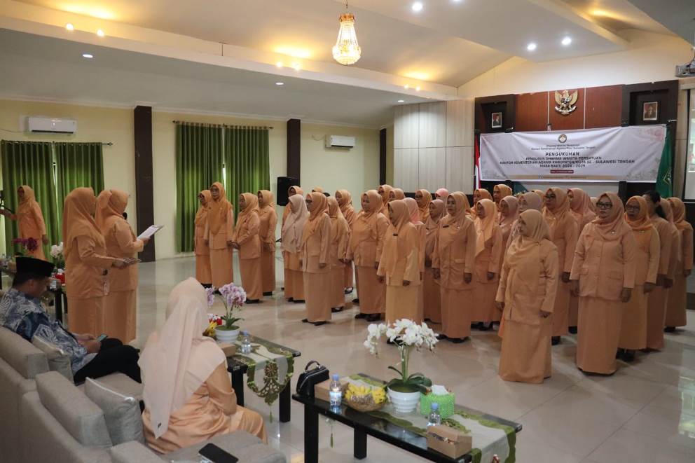 Sementara itu, Ketua DWP Kanwil Kemenag Sulteng, Sandra, dalam arahannya menekankan pentingnya kebersamaan dan sinergi antar pengurus. Ia berharap pengukuhan ini menjadi awal pengabdian yang penuh dedikasi, keikhlasan, dan komitmen.