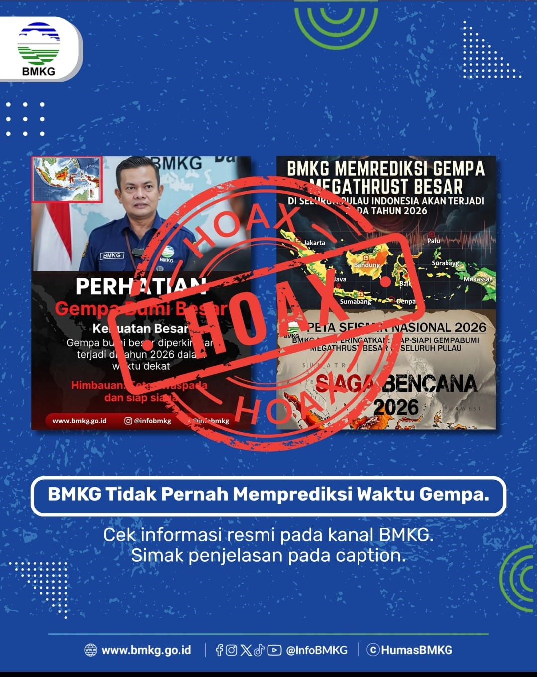 Menurutnya, kabar tersebut mencatut nama BMKG tanpa dasar. Ia menegaskan bahwa BMKG tidak pernah menyampaikan prediksi waktu pasti terjadinya gempa bumi. “Dalam ilmu pengetahuan dan teknologi saat ini, belum ada metode yang mampu memprediksi secara tepat kapan, di mana, dan seberapa besar gempa akan terjadi,” ujar Abdullah di Kabupaten Tolitoli.