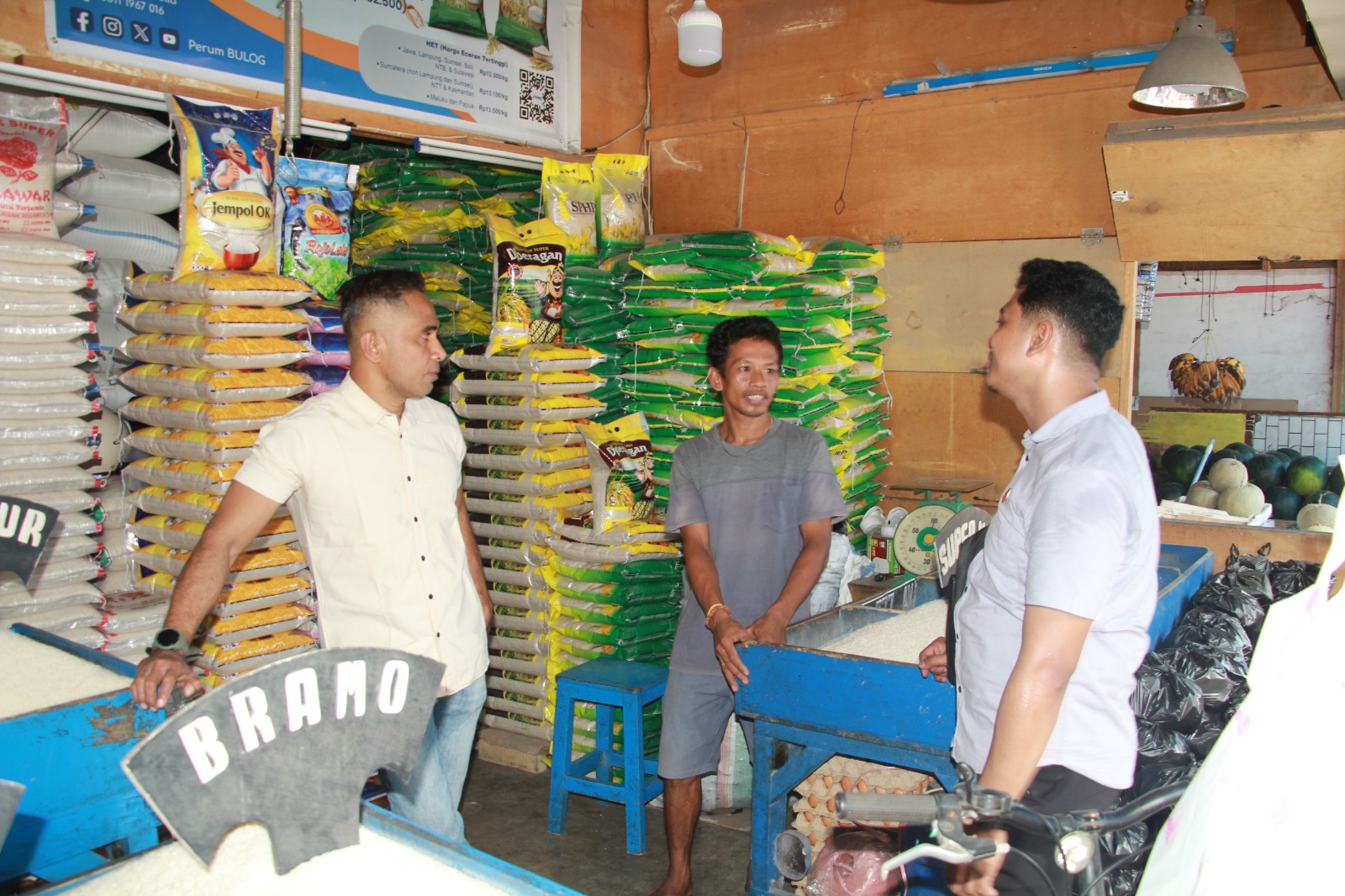 Sidak tersebut dihadiri Kanit Eksus Ipda Qobitin Elia Rosa, tim memantau langsung sejumlah komoditi seperti beras, minyak goreng, gula pasir, telur, dan cabai untuk memastikan ketersediaan dan harga tetap terkendali.