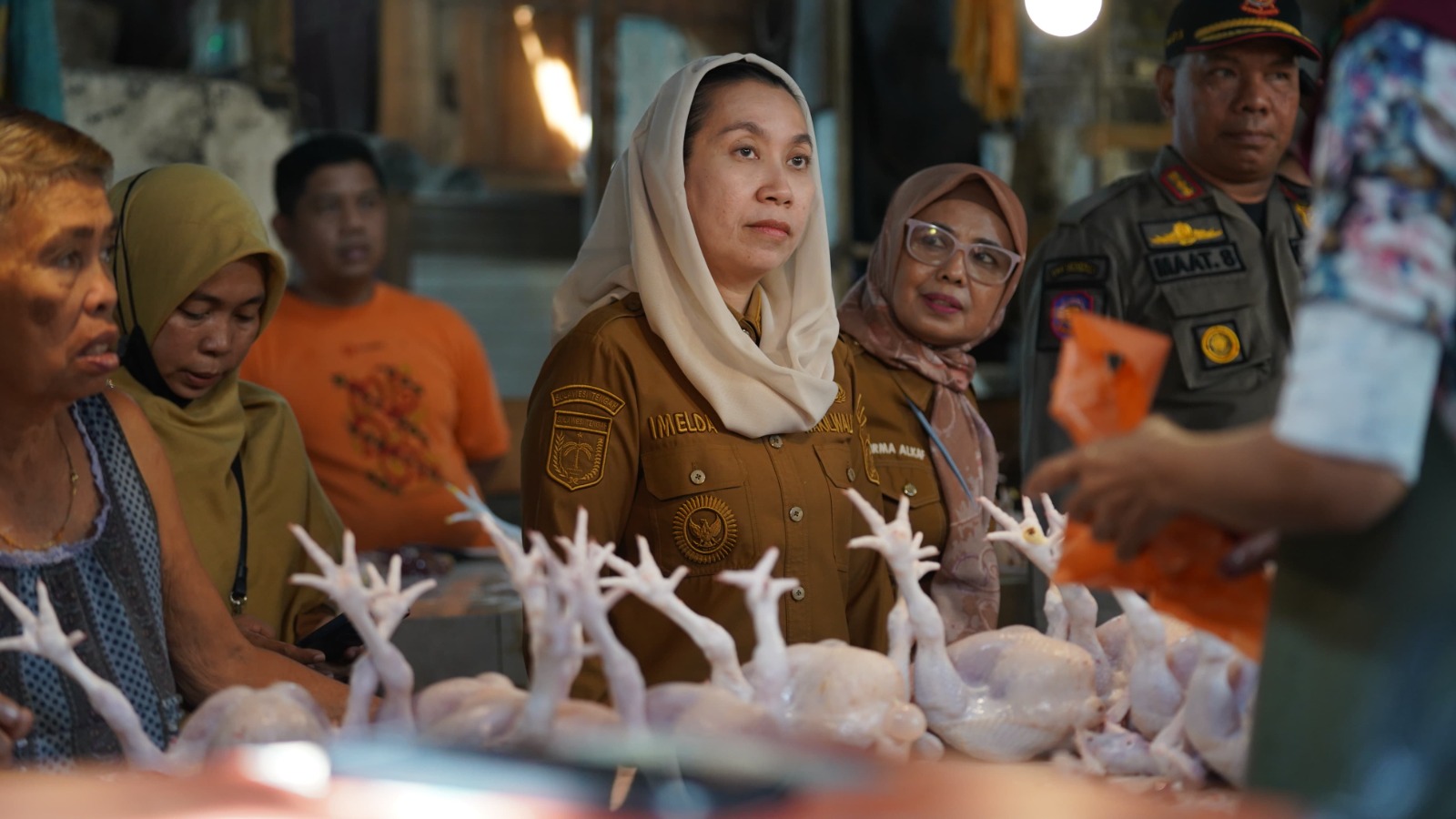 Dalam peninjauan tersebut, Wakil Wali Kota Imelda berdialog langsung dengan para pedagang dan masyarakat untuk mengetahui kondisi harga serta pasokan bahan pangan di pasar.