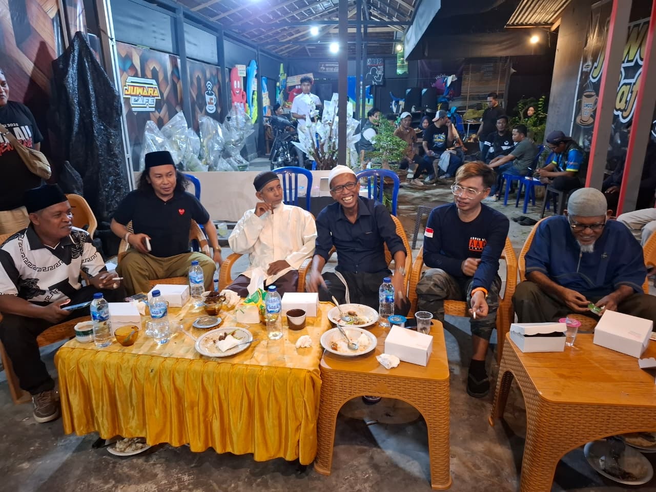 Sebelum berkumpul dalam suasana buka puasa bersama, Sayutin bersama sejumlah rekannya terlebih dahulu turun ke jalan membagikan takjil kepada para pengguna jalan yang melintas. Pengendara roda dua hingga roda empat yang melintas tampak menerima paket takjil dengan senyum dan ucapan terima kasih, menambah nuansa kebersamaan di bulan suci Ramadan.