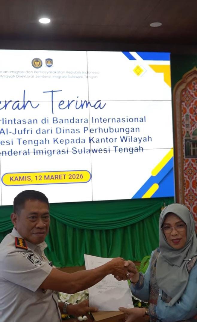 SULTENG RAYA – Kantor Imigrasi Kelas I TPI Palu menerima hibah perangkat perlintasan dari Dinas Perhubungan (Dishub) Provinsi Sulawesi Tengah (Sulteng), Kamis (12/3/2026).