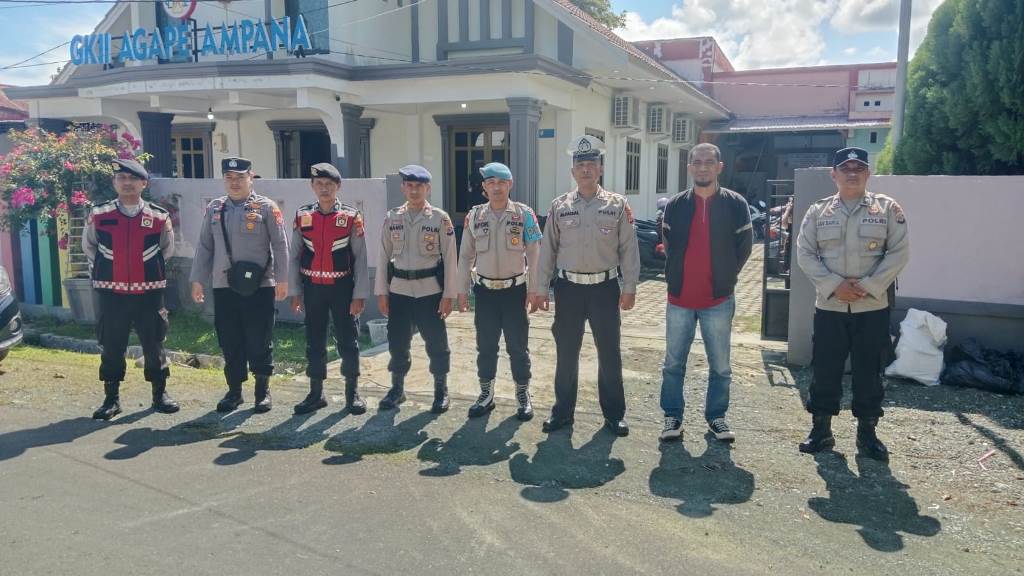 Sementara itu, di wilayah Kecamatan Ampana Tete, ibadah tersebar di beberapa titik seperti Gereja Syalom Desa Tete, Gereja Katolik Bunda Hati Kudus Desa Bulan Jaya, hingga Gereja Bukit Zaitun di Desa Balingara. Meski tersebar, personel Polsek Ampana Tete bersinergi dengan Babinsa memastikan setiap prosesi peribadatan terjaga kondusivitasnya.