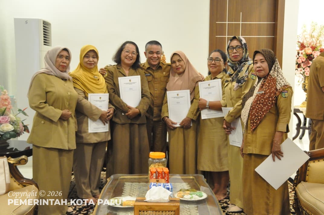 SULTENG RAYA- Wali Kota Palu Hadianto Rasyid, menyerahkan Surat Keputusan (SK) kepada 12 pensiunan, empat Pegawai Negeri Sipil (PNS), dan dua Calon Pegawai Negeri Sipil (CPNS) lingkup Pemerintah Kota Palu, pada Selasa (07/04/2026) di rumah jabatan Wali Kota Palu.