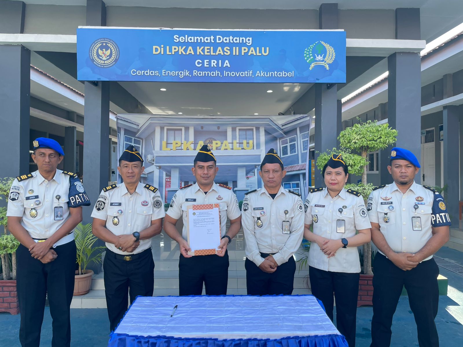 Setelah pembacaan ikrar secara serentak, agenda dilanjutkan dengan penandatanganan piagam ikrar oleh Kepala LPKA Palu, Welli, yang kemudian diikuti oleh seluruh jajaran. Penandatanganan ini menjadi simbol tanggung jawab moral setiap individu untuk tidak terlibat dalam praktik ilegal yang dapat merusak citra instansi.
