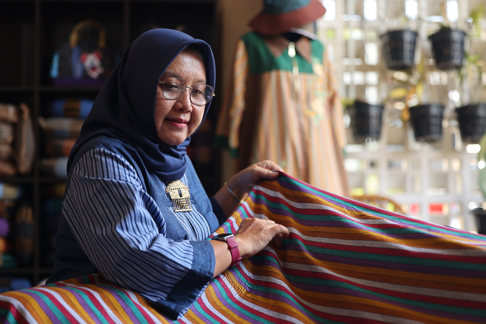 “Meskipun lokasi usaha saya berada di dalam gang, kehadiran mini galeri di rumah hasil dukungan BRI ini terbukti meningkatkan kepercayaan konsumen. Pernah ada rombongan ibu-ibu sampai membawa tiga mobil masuk ke gang hanya untuk melihat koleksi kami secara langsung,” kenangnya. Peni kini telah mengubah fungsi ruang tamu pribadinya menjadi area pajang yang profesional dengan deretan manekin dan rak display yang tertata rapi.