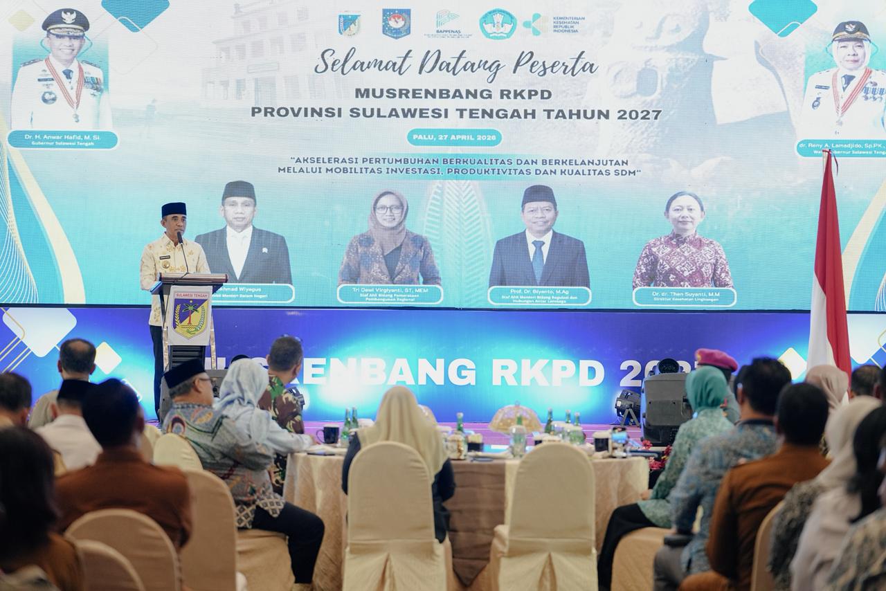 SULTENG RAYA – Pemerintah Provinsi Sulawesi Tengah menggelar Musyawarah Perencanaan Pembangunan (Musrenbang) RKPD Provinsi Sulawesi Tengah Tahun 2026 pada Senin (27/4) di Grand Sya Hotel. Kegiatan ini dihadiri oleh Gubernur dan Wakil Gubernur Sulawesi Tengah, para bupati dan wakil wali kota se-Sulawesi Tengah, serta pemangku kepentingan pembangunan daerah.